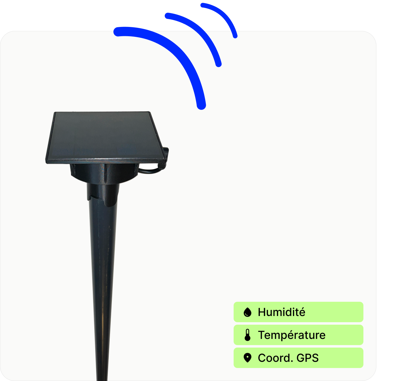 L’installation des sondes Akuasense est simple et rapide. Il suffit de les enfoncer dans le sol Ă la profondeur souhaitĂ©e. Aucun cĂąble ni boĂźtier externe n’est nĂ©cessaire. L’important est d’assurer un bon contact entre la sonde et le sol, et de choisir une zone reprĂ©sentative de la parcelle. La transmission des donnĂ©es s’effectue via rĂ©seau mobile. Carte SIM et forfait inclus.